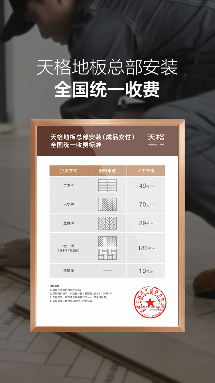 讓服務(wù)價(jià)值更客觀|天格地板公布總部安裝全國(guó)統(tǒng)一收費(fèi)標(biāo)準(zhǔn)